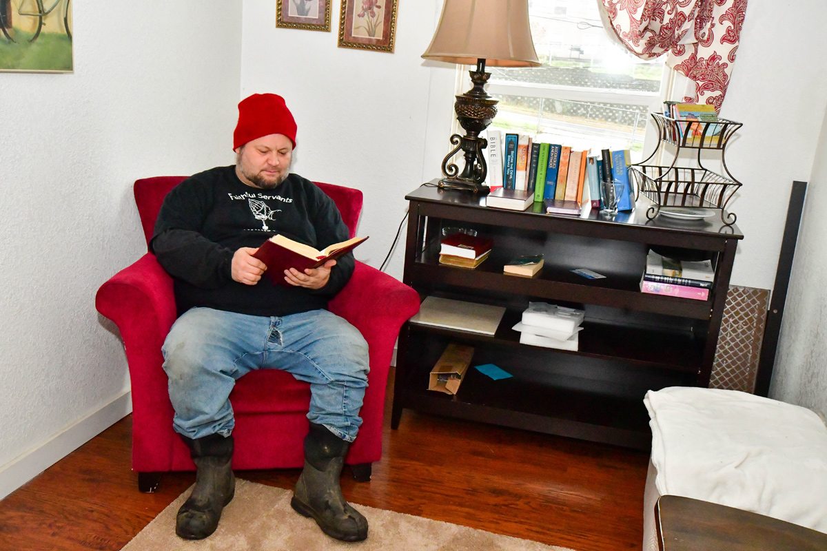 Gary’s Place is a seven-bedroom historic white building on the corner of North Fourth and Academy Streets, across the parking lot from KCA (Kelso Christian Assembly), formerly used by the Catholic Church for nuns and priests. Today it houses 20 men coming off the streets, prison, and other walks of life, who are looking for reunification with families and society. Alex Drumal is the house manager.