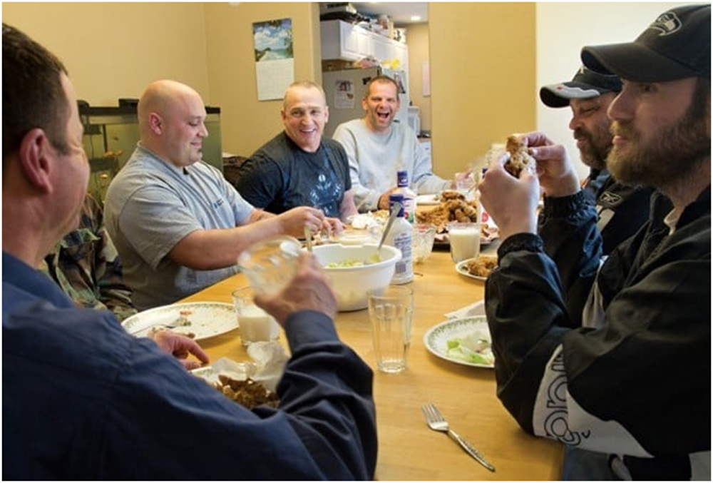 Each Wednesday and Friday the men also must attend the Celebrate Recovery sessions. Sunday they must attend services at a church of their choosing. Meals also are taken together as a family.
